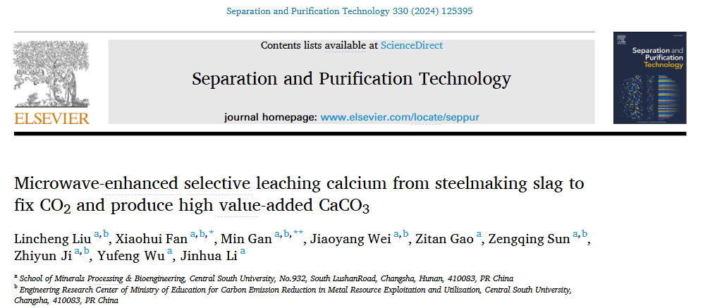 In this manuscript, we describe a steel slag carbonization technique that uses acetic acid (HAc) as the leaching solvent. In addition, we studied in depth the effects of different experimental parameters on the slag leaching process in a microwave environment. It reveals the kinetic mechanism of calcium leaching in steel slag and synthesizes high-value CaCO products by adsorption of low-concentration CO in leachate. The process combines the selective leaching capabilities of HAc with the uniformity and efficiency provided by microwave-enhanced heating. As a result, the calcium and magnesium elements are selectively separated and leached from the steel slag. It solves the challenges of unstable steel slag properties and limited resource utilization, and shows broad development prospects. In addition, the extracted solution can be used for COsequestation and the synthesis of high-purity, high-value carbonate materials. This has greatly contributed to the advancement of CCUS technology in the steel industry, while generating significant social and economic advantages.