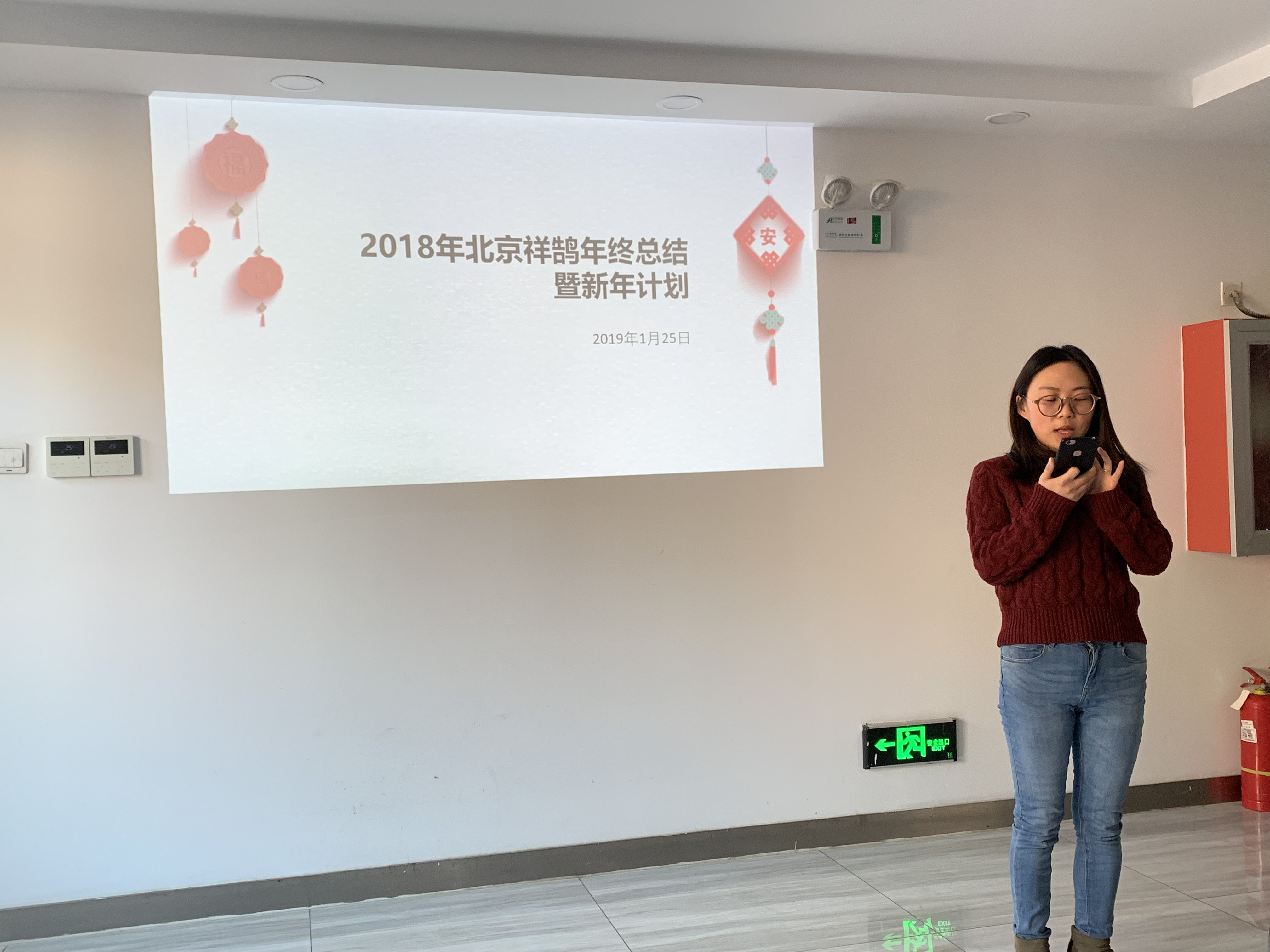 【胡曌璽經(jīng)理為北京祥鵠做2018年年終總結(jié)暨新年計(jì)劃發(fā)言】↑