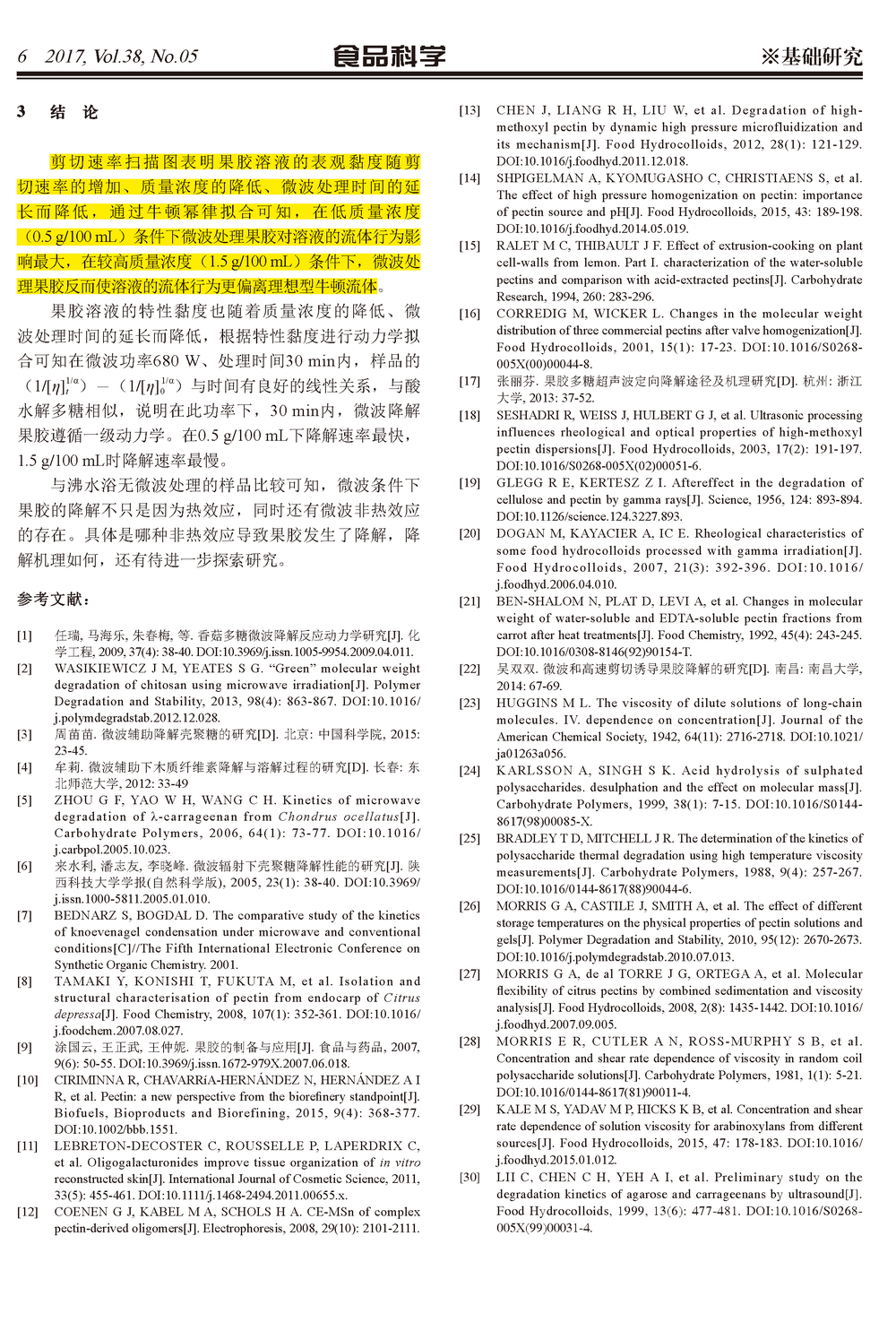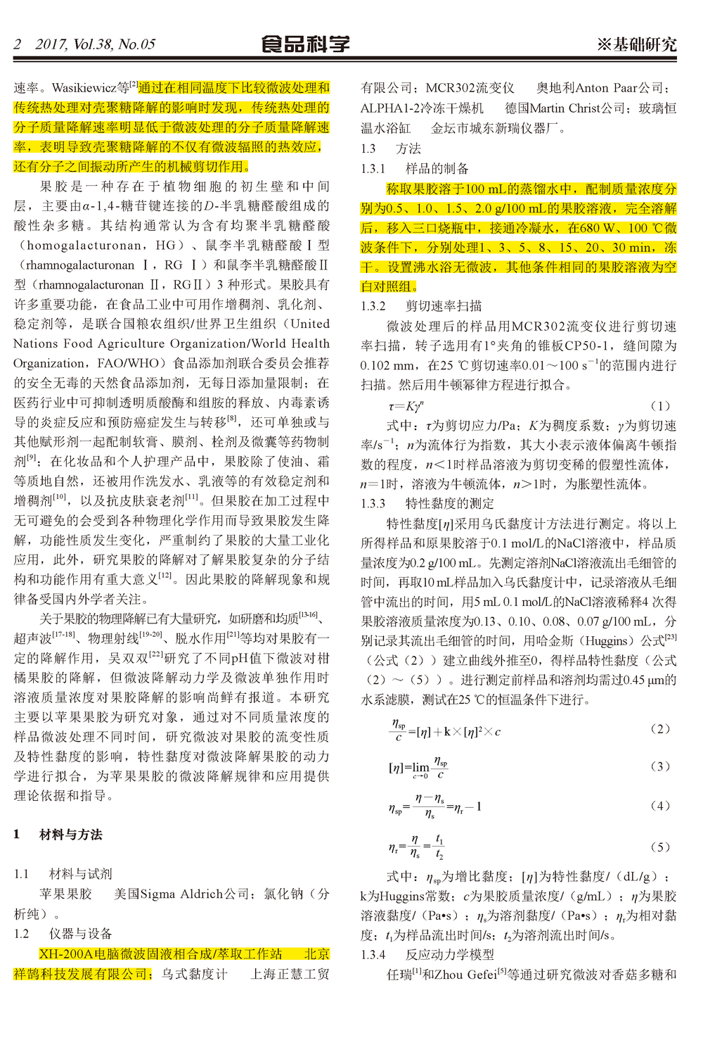 微波降解果膠對其流變性質(zhì)的影響及動力學(xué)