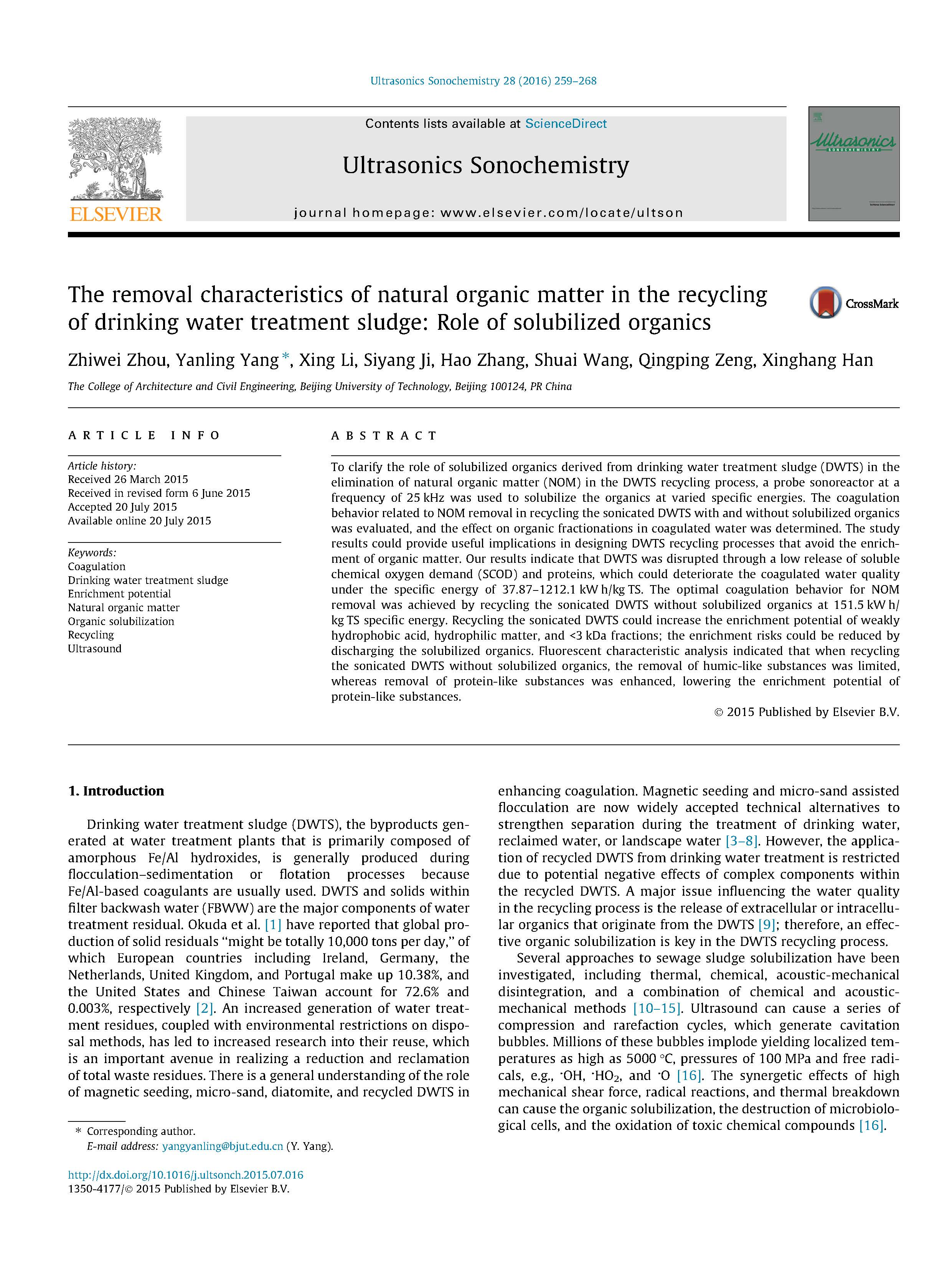 這篇由北京工業(yè)大學(xué)等的研究學(xué)者完成,討論飲用水處理污泥回收中天然有機(jī)物的去除特性:溶解有機(jī)物的作用的論文,發(fā)表在二區(qū)重要期刊《Ultrasonics Sonochemistry》,影響因子:6.012。