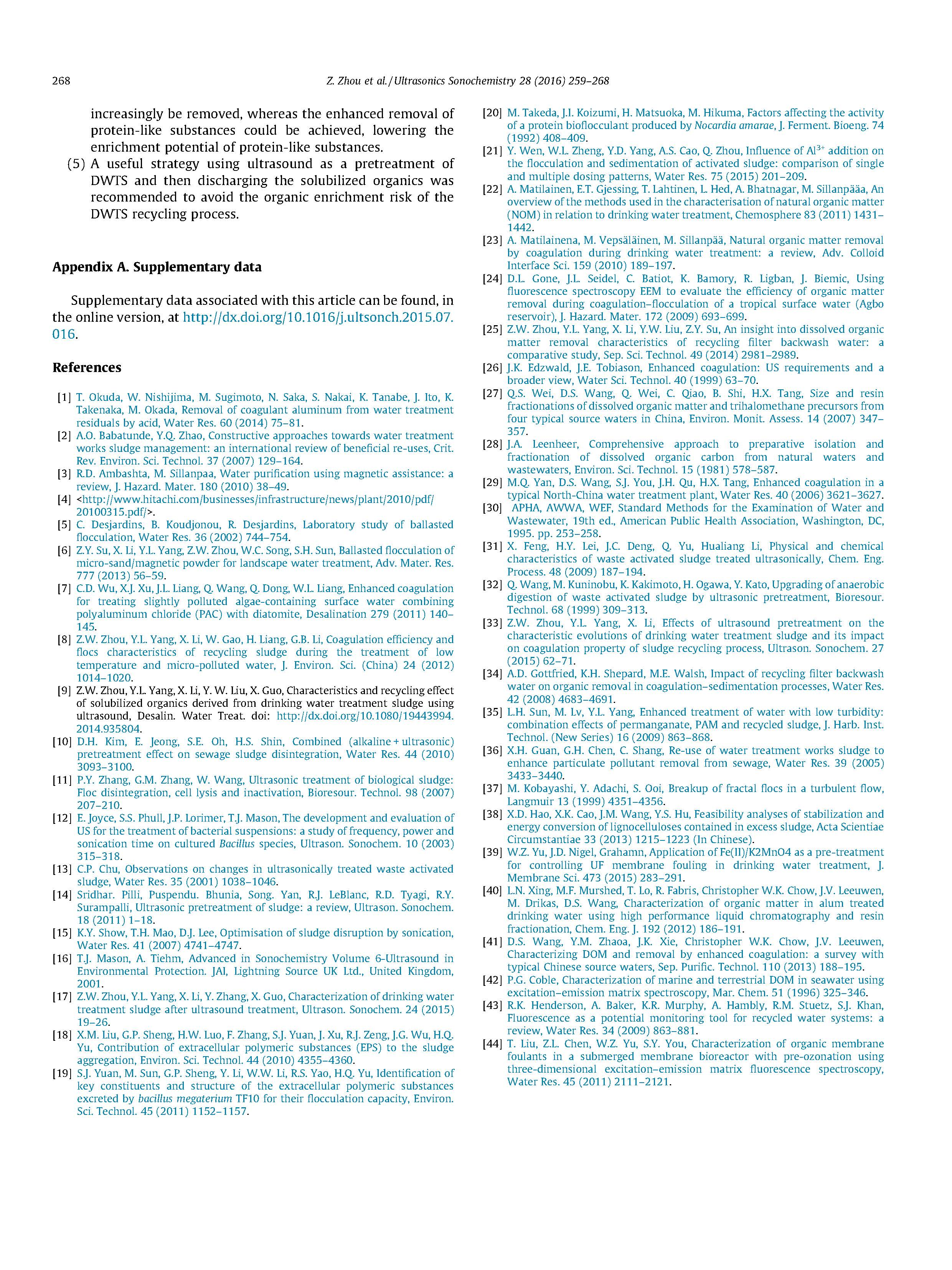 為了闡明飲用水處理污泥(DWTS)中增溶有機(jī)物在DWTS循環(huán)過程中去除天然有機(jī)物(NOM)的作用,采用頻率為25 kHz的探頭聲納對不同比能量的有機(jī)物進(jìn)行了增溶處理。評價(jià)了含增溶有機(jī)物和不加增溶有機(jī)物的超聲波DWTS回收過程中與NOM去除有關(guān)的混凝行為,并測定了混凝水中對有機(jī)物分餾的影響。研究結(jié)果可為設(shè)計(jì)避免有機(jī)物富集的DWTS回收工藝提供有益的啟示。