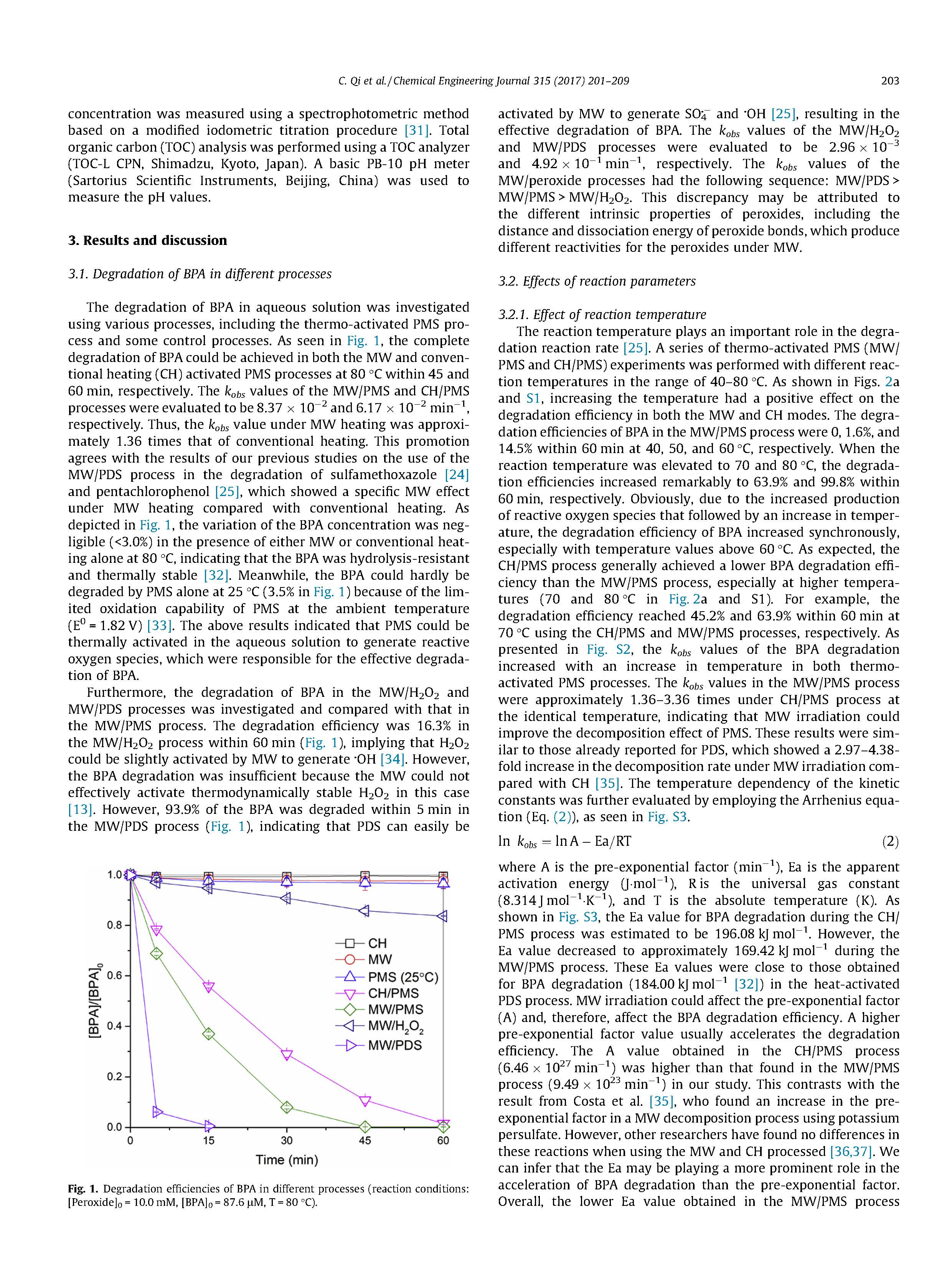 在本研究中,通過微波(MW)輻射成功地實現(xiàn)了過氧單硫酸酯(PMS)的活化,并隨后應用于雙酚A(BPA)的降解,這是一種在環(huán)境中經(jīng)常檢測到的內(nèi)分泌干擾化學物質(zhì),尤其是在溫度超過60℃時。