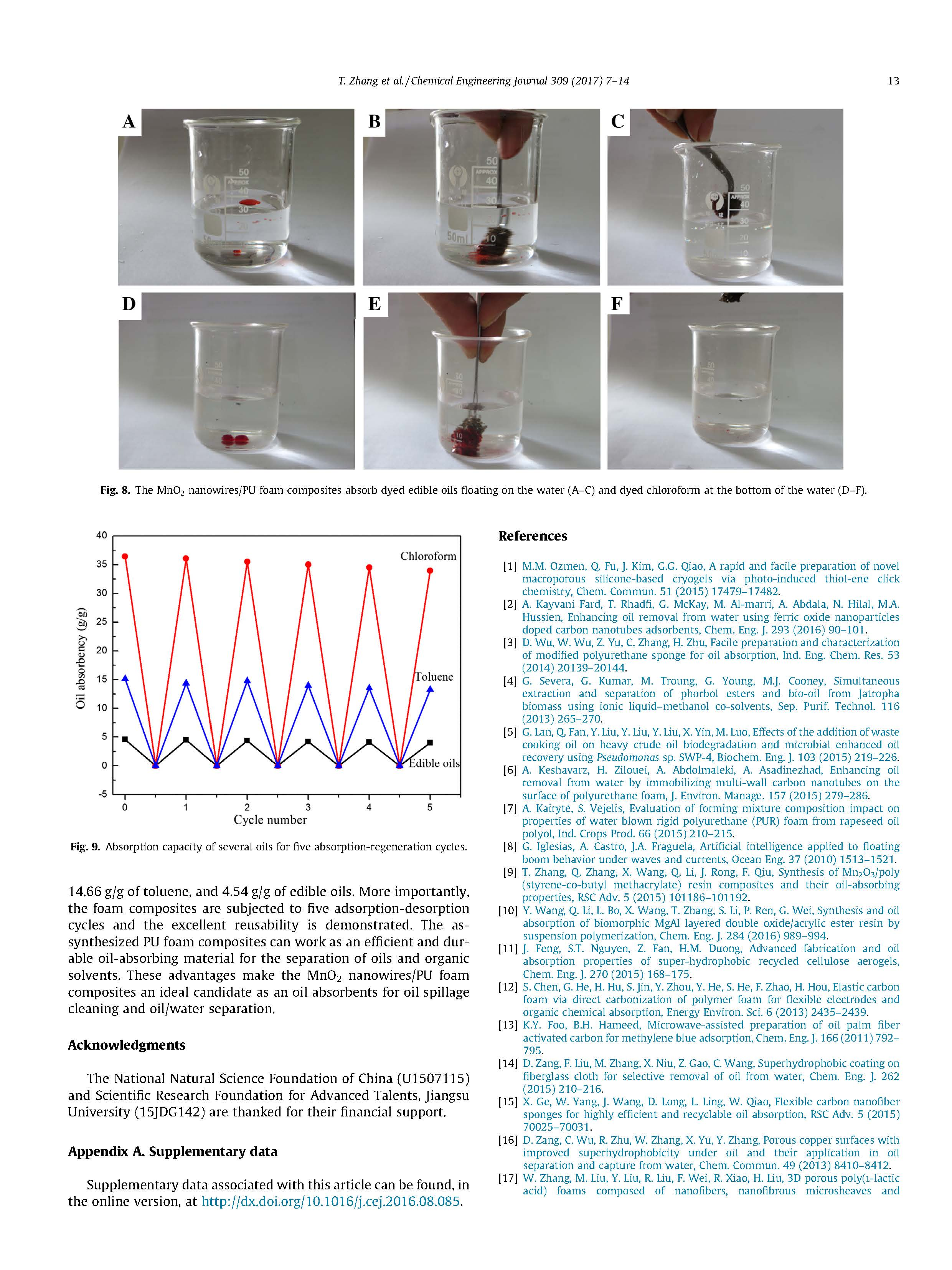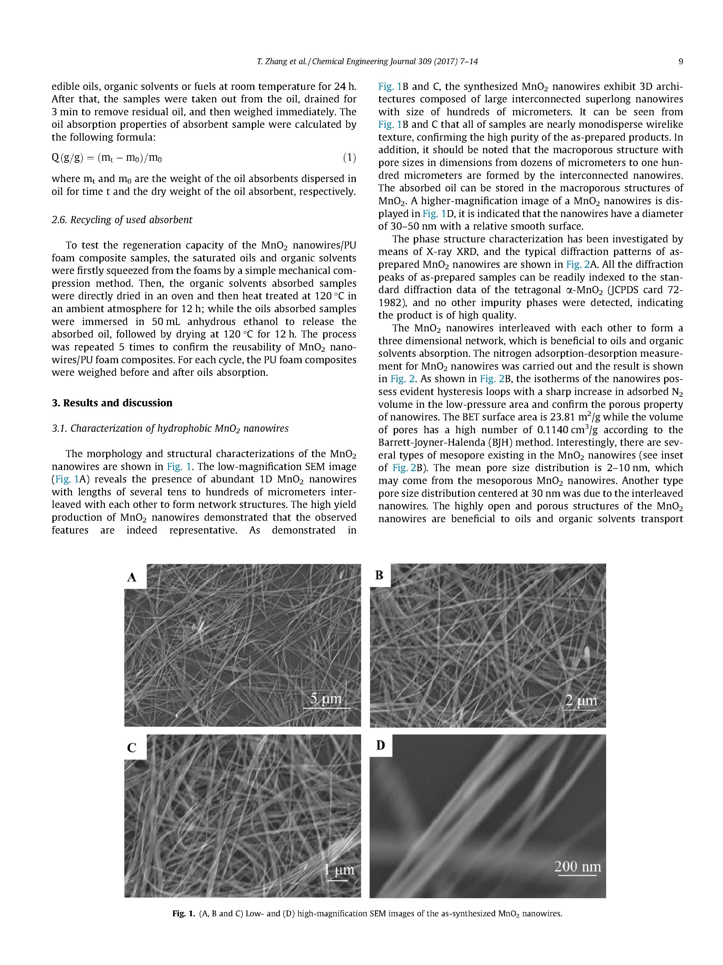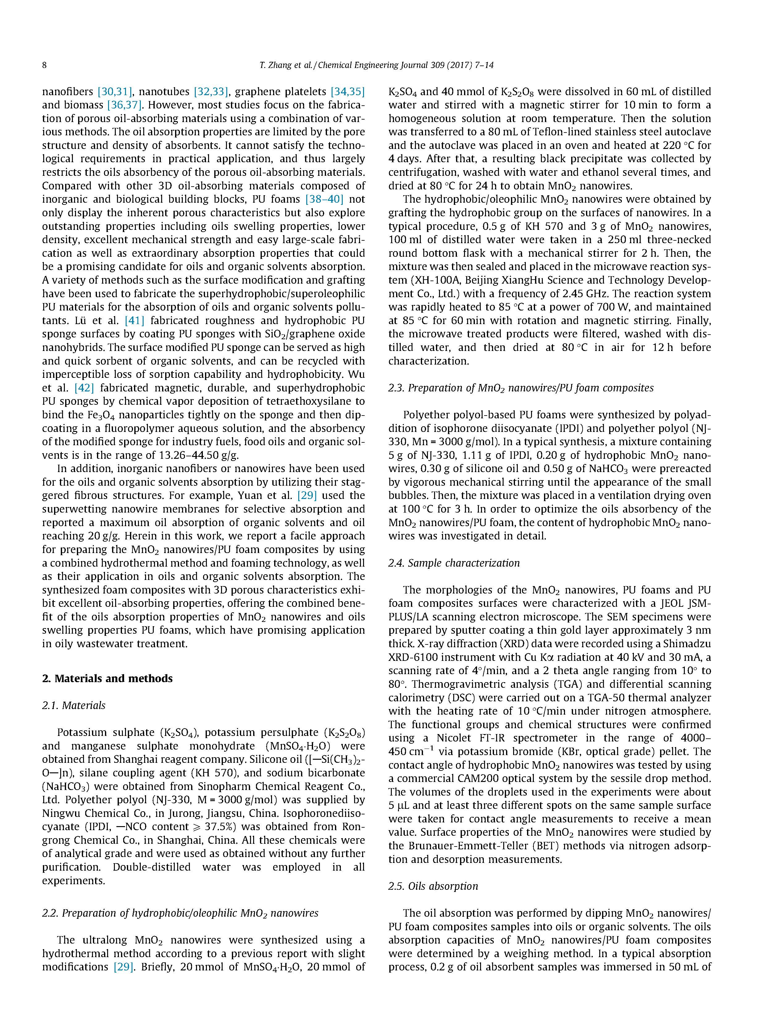 這篇由江蘇大學(xué)等的研究學(xué)者完成,討論用MnO2納米線改性的聚氨酯泡沫復(fù)合材料吸收油和有機(jī)溶劑的論文,發(fā)表在一區(qū)重要期刊《Chemical Engineering Journal》,影響因子:6.735。