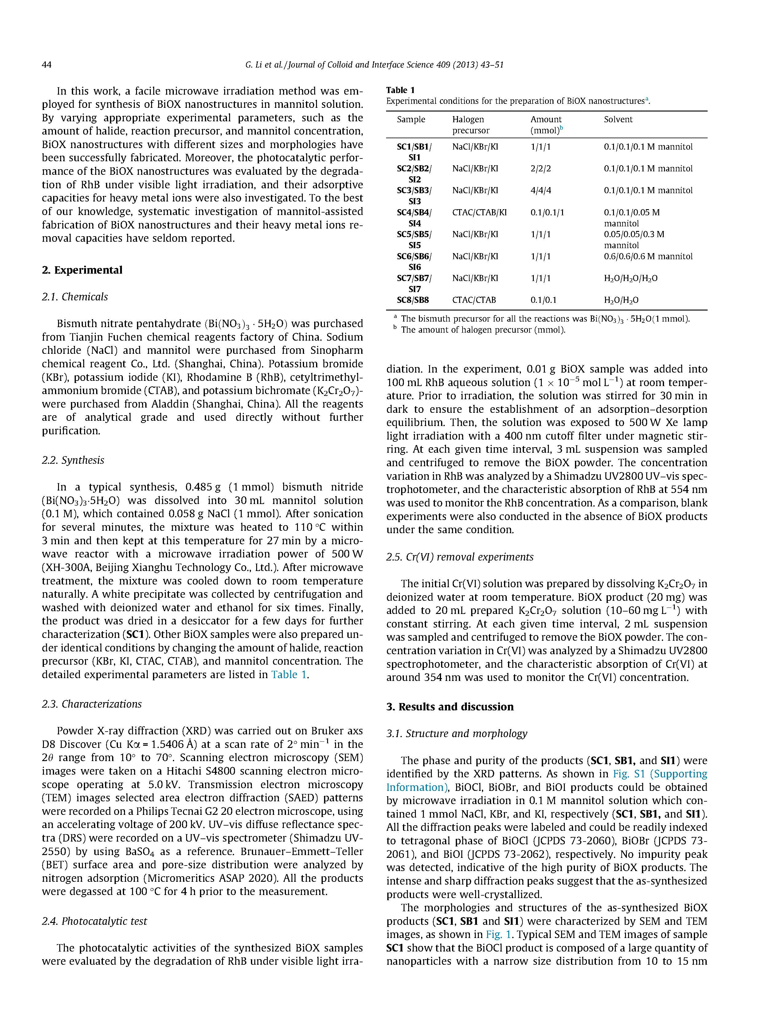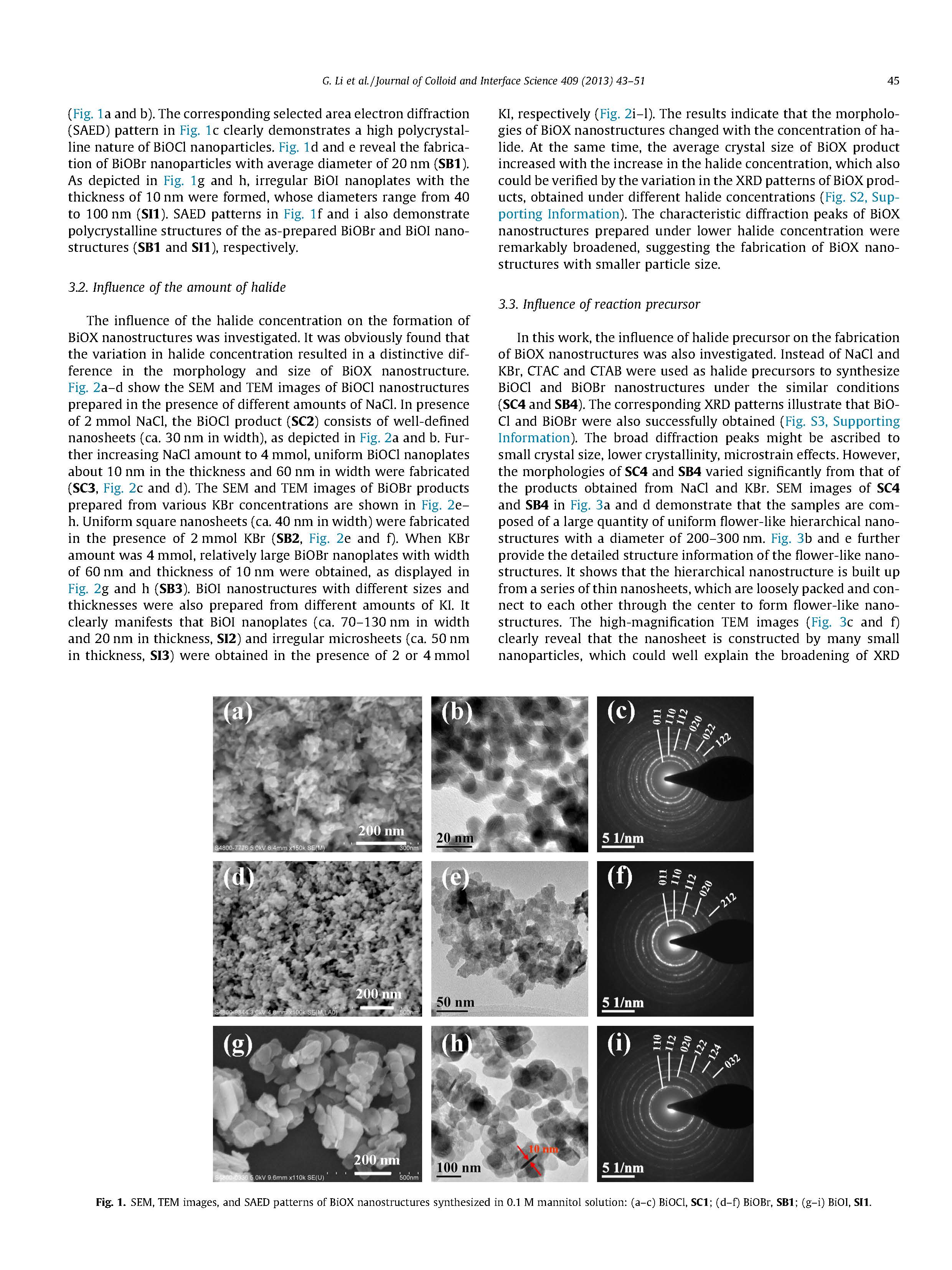 本文提出了一種簡(jiǎn)便的微波輻射方法,用于在甘露醇溶液中可控制備BIOX(X=Cl,Br,I)納米結(jié)構(gòu)。通過(guò)調(diào)節(jié)鹵化物、反應(yīng)前驅(qū)體和甘露醇濃度,可以方便地調(diào)整BIOX納米結(jié)構(gòu)的形貌和尺寸。
