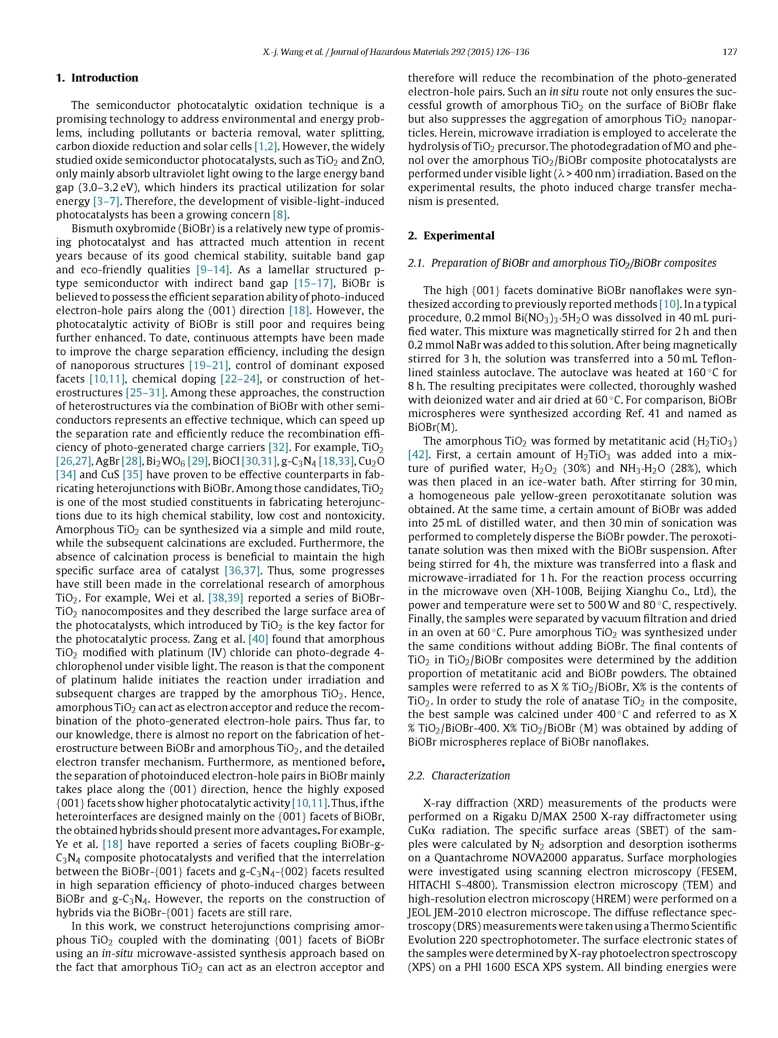160 通過(guò)小面耦合構(gòu)造非晶態(tài)TiO2 / BiOBr異質(zhì)結(jié)以提高光催化活性