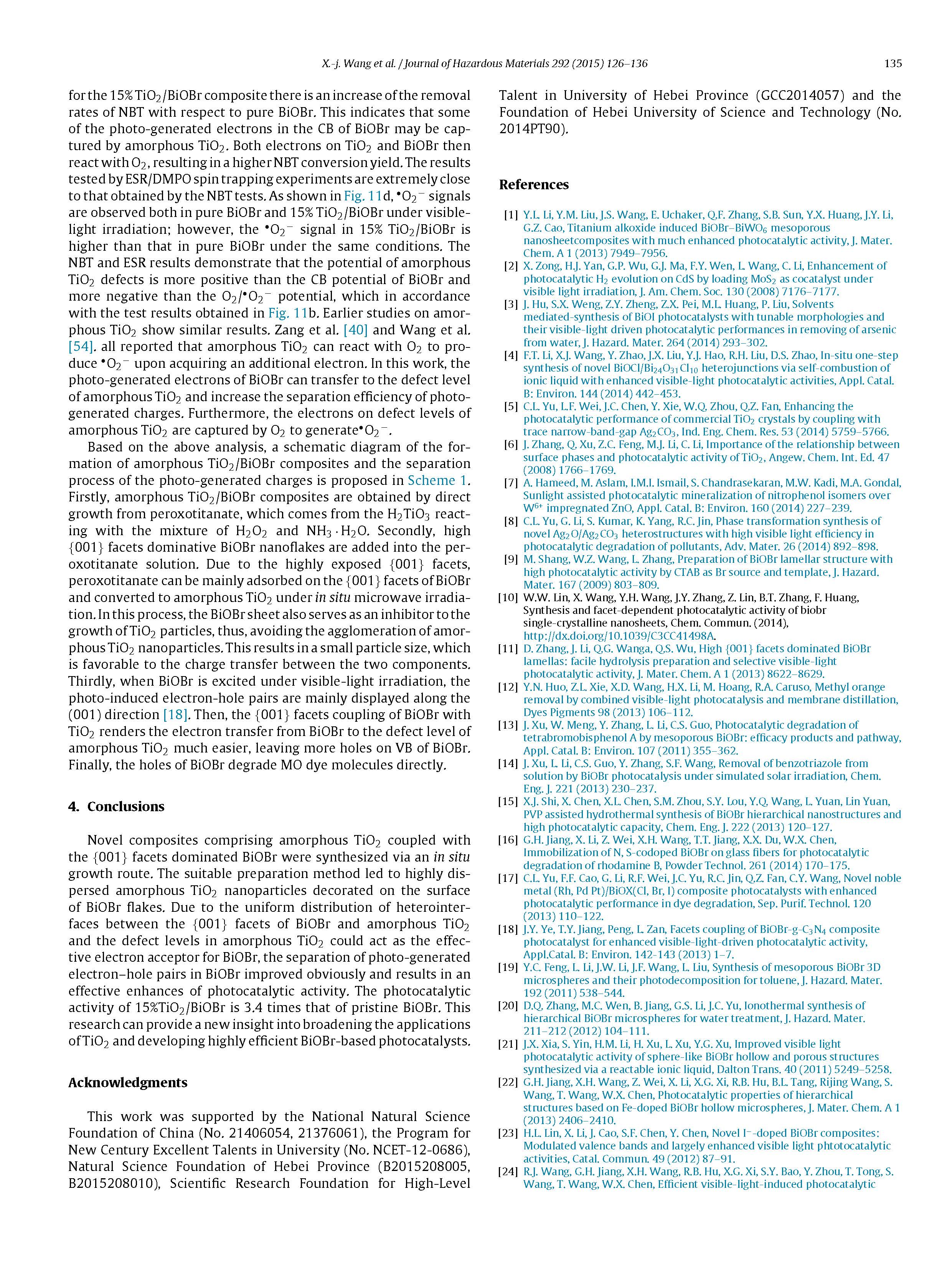 這篇由河北科技大學(xué)理學(xué)院等的研究學(xué)者完成,討論通過(guò)小面耦合構(gòu)造非晶態(tài)TiO2 / BiOBr異質(zhì)結(jié)以提高光催化活性的論文,發(fā)表在一區(qū)重要期刊《Journal of Hazardous Materials》,影響因子:6.434。