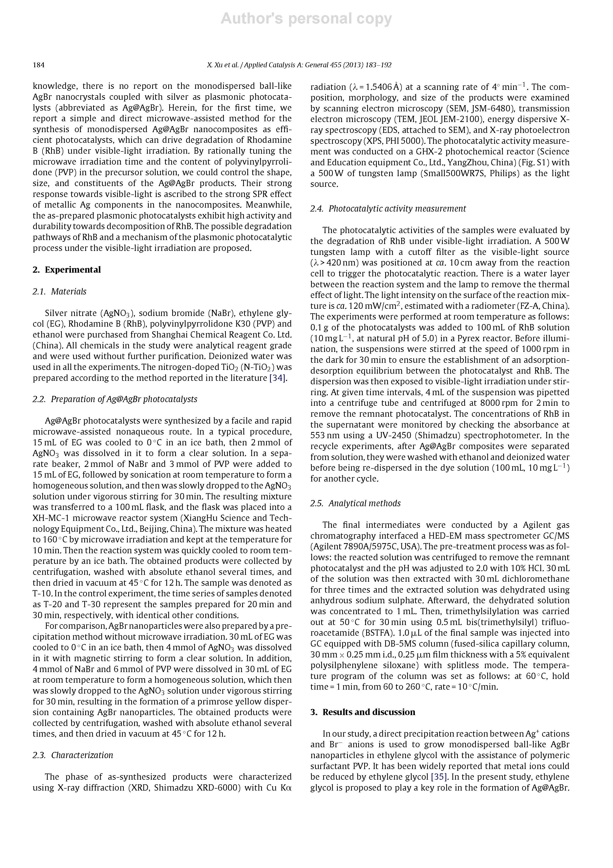簡單的微波輔助合成單分散球狀Ag @ AgBr光催化劑,具有高活性和耐久性