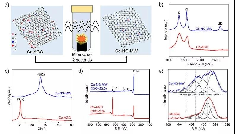 ? 石墨烯負(fù)載的單原子金屬(G-SAMs)由于具有卓越的催化、電子和磁性,近來引起了人們極大的研究興趣。 ? 開發(fā)具有單分散金屬原子的G-SAMs有效的合成方法,對于探索它們的基本屬性和潛在應(yīng)用是至關(guān)重要的。本文報道了一個方便、快速和一般策略合成一系列嵌入氮摻雜石墨烯中單分散原子過渡金屬(例如Co,Ni,Cu),用二秒微波加熱胺官能化的氧化石墨烯和金屬鹽的混合物的方法。 ? 微波加熱這個簡單的步驟能夠同時誘導(dǎo)氧化石墨烯的還原、摻雜氮以及金屬原子在石墨烯晶格中的摻入。快速微波工藝可最大限度地減少金屬擴散和聚集,確保石墨烯晶格中的獨特單金屬原子分散。 ? 電化學(xué)研究表明:石墨烯負(fù)載的Co原子可以作為高活性電催化劑用于析氫反應(yīng)。 這種微波輔助方法提供了一種快速有效的途徑負(fù)載金屬原子,適用于各種廣泛的應(yīng)用。