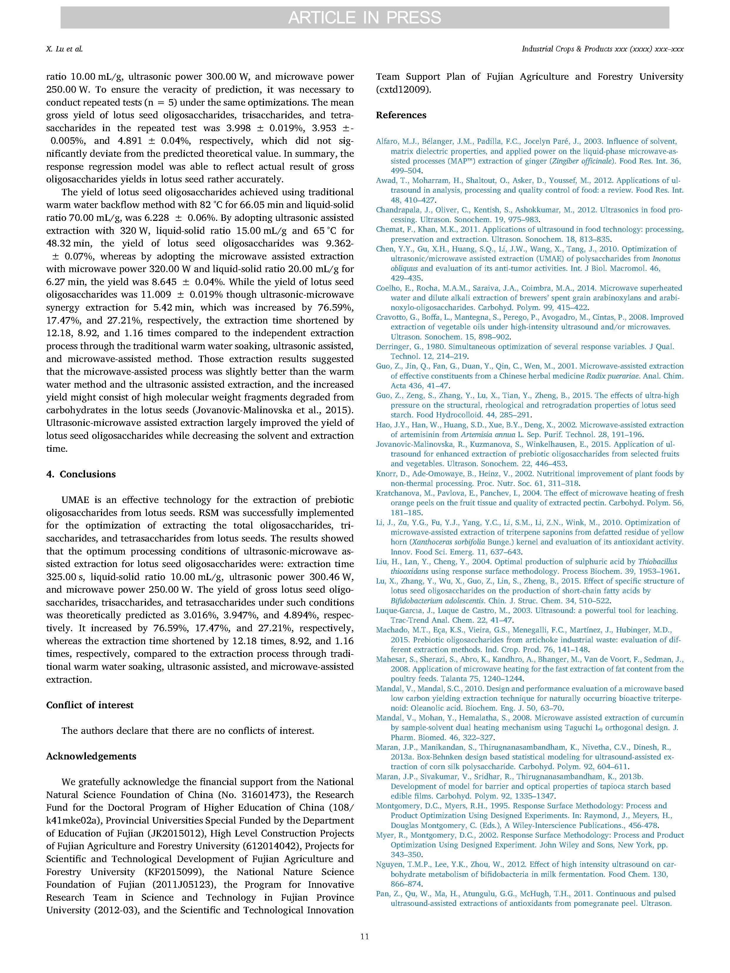 這些結(jié)果證實了UMAE在提取低聚糖方面比傳統(tǒng)熱水、超聲波或微波輔助萃取有更大的潛力和效率。
