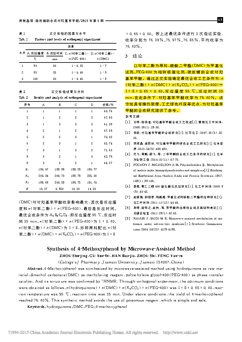 這篇由佳木斯大學(xué)藥學(xué)院的研究學(xué)者完成,討論微波輔助合成對(duì)羥基苯甲醚的論文,發(fā)表在重要期刊《化學(xué)與生物工程》上。