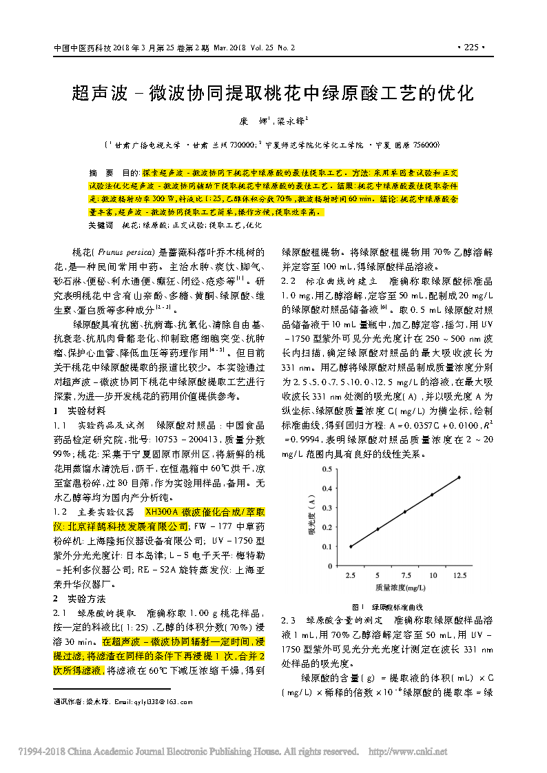 300A 超聲波_微波協(xié)同提取桃花中綠原酸工藝的優(yōu)化