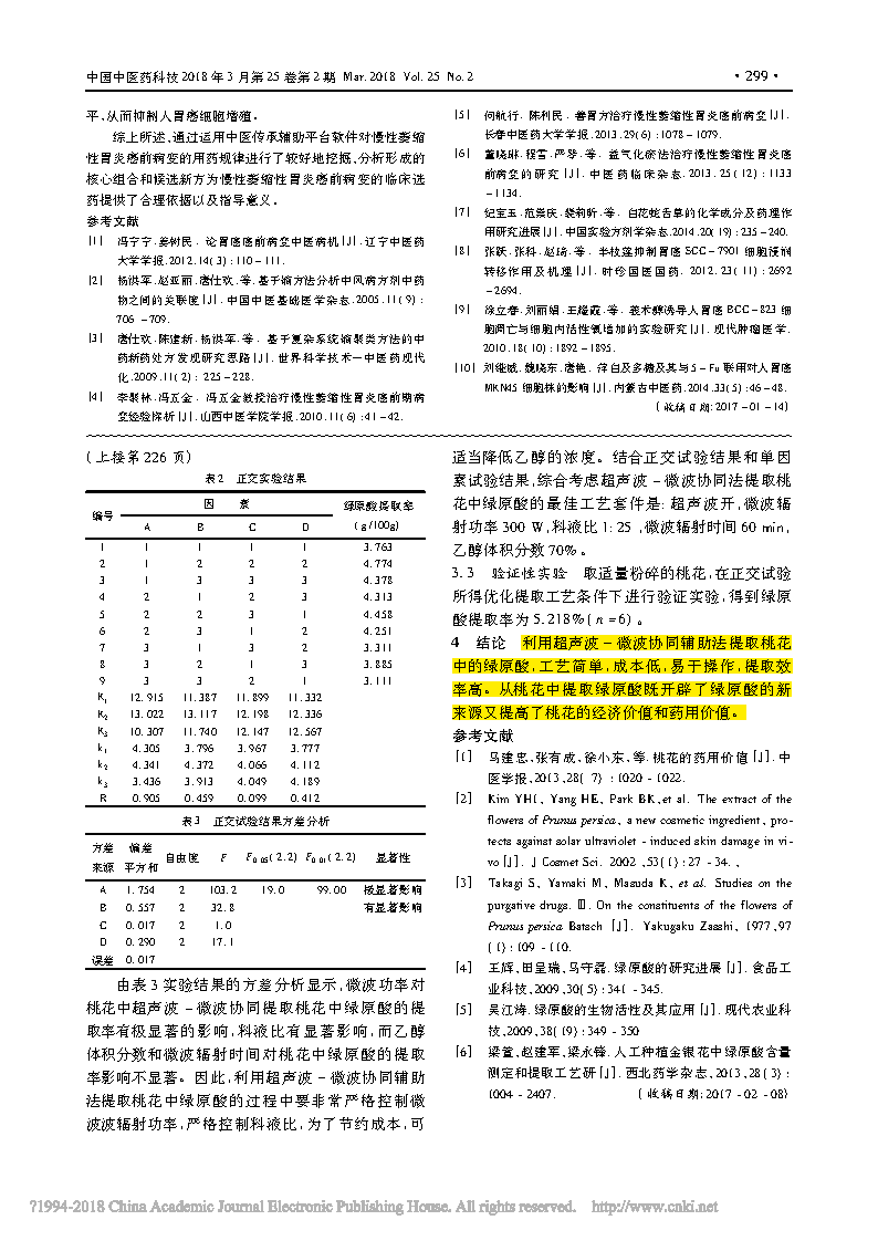 這篇由甘肅廣播電視大學的研究學者完成,討論超聲波-微波協(xié)同提取桃花中綠原酸工藝的優(yōu)化的論文,發(fā)表在重要期刊《中國中醫(yī)藥科技》上。