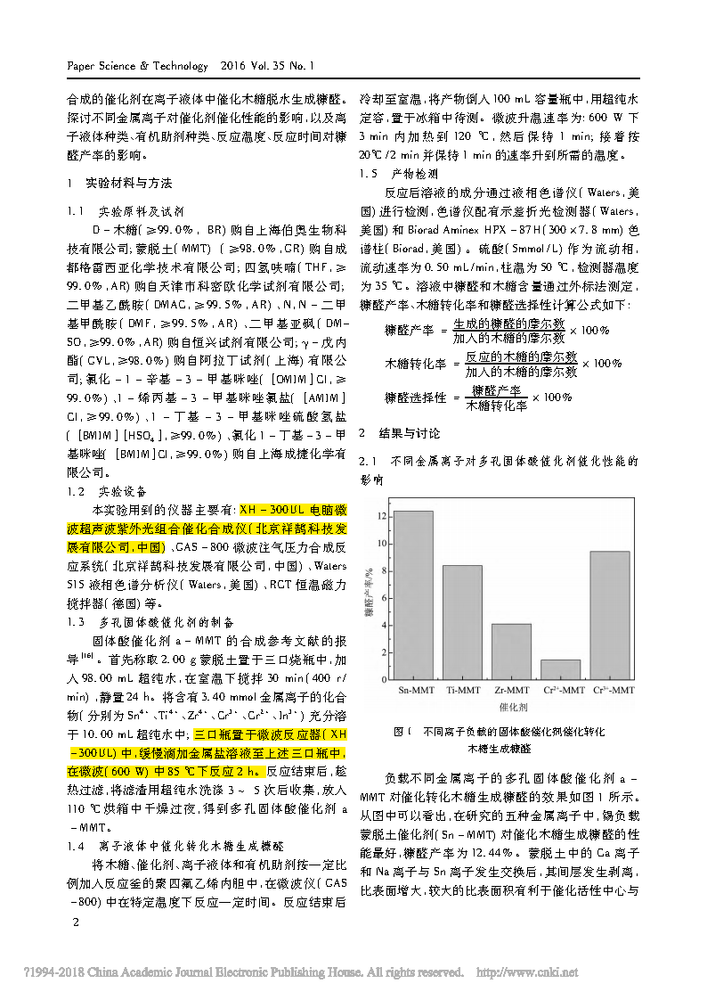 這篇由華南理工大學(xué)的研究學(xué)者完成,討論離子液體中錫負(fù)載蒙脫土催化轉(zhuǎn)化木糖生成糠醛的研究的論文,發(fā)表在重要期刊《造紙科學(xué)與技術(shù)》上。