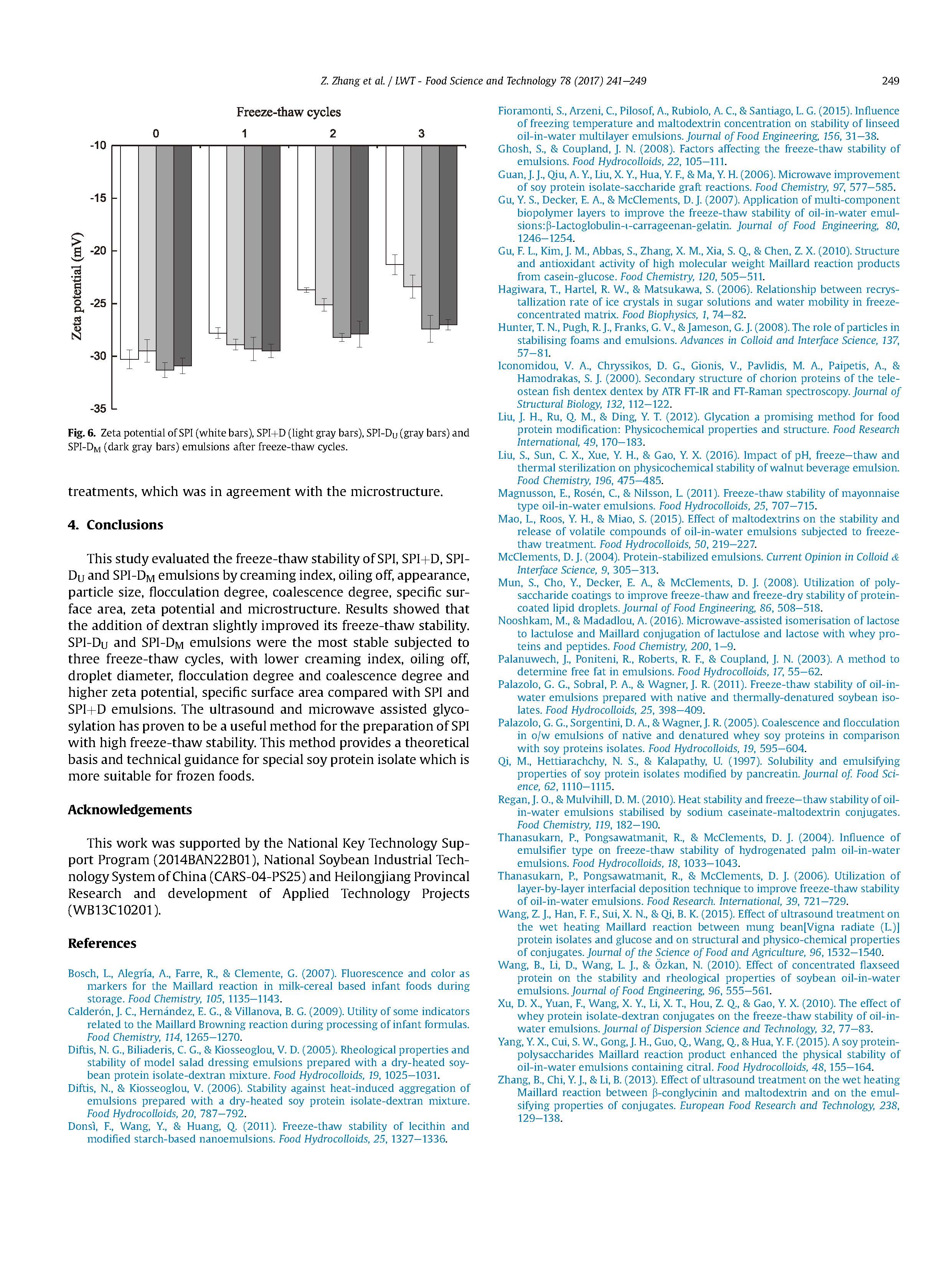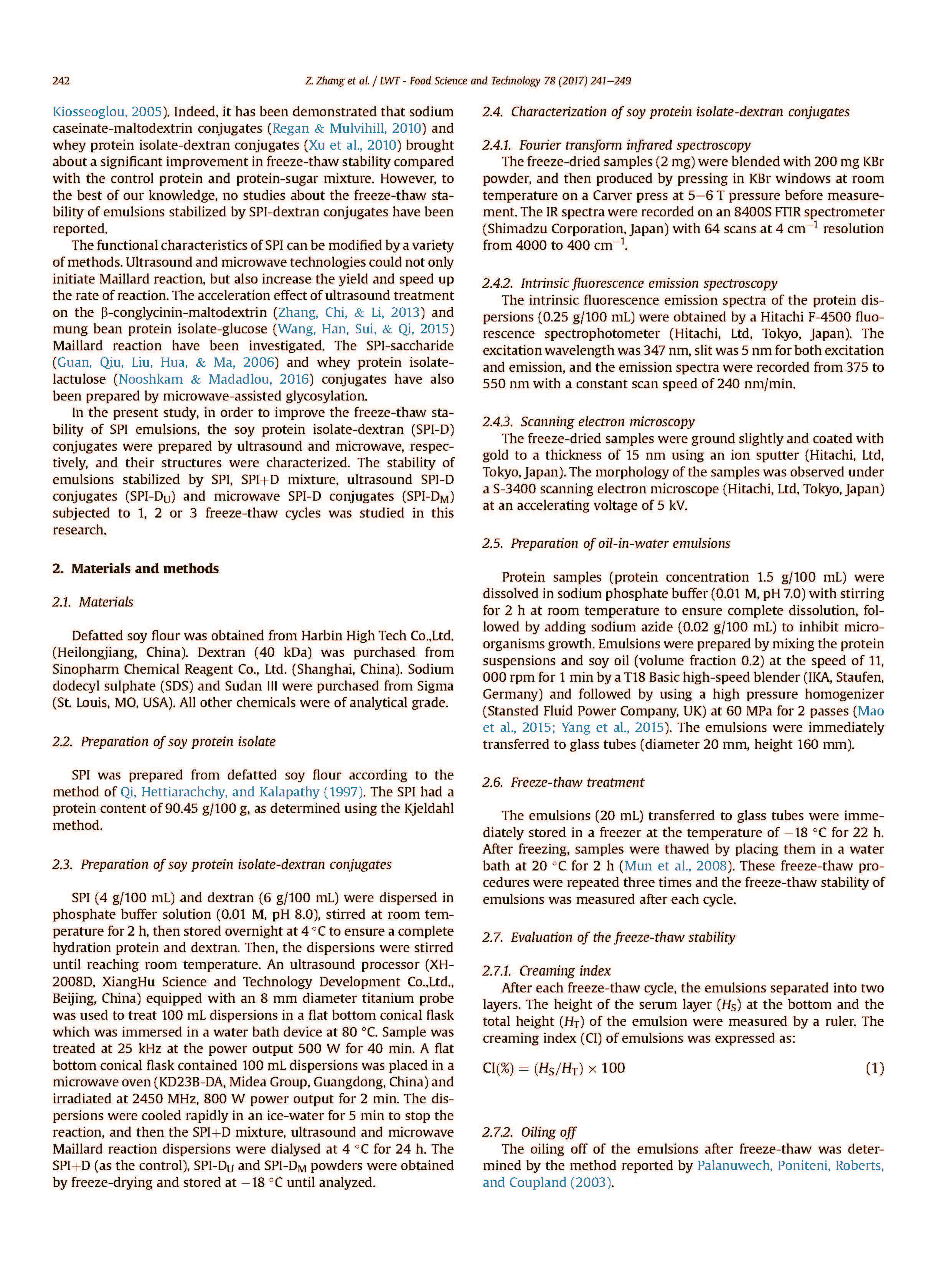 通過大豆蛋白分離物 - 葡聚糖綴合物穩(wěn)定的水包油乳液的凍融穩(wěn)定性
